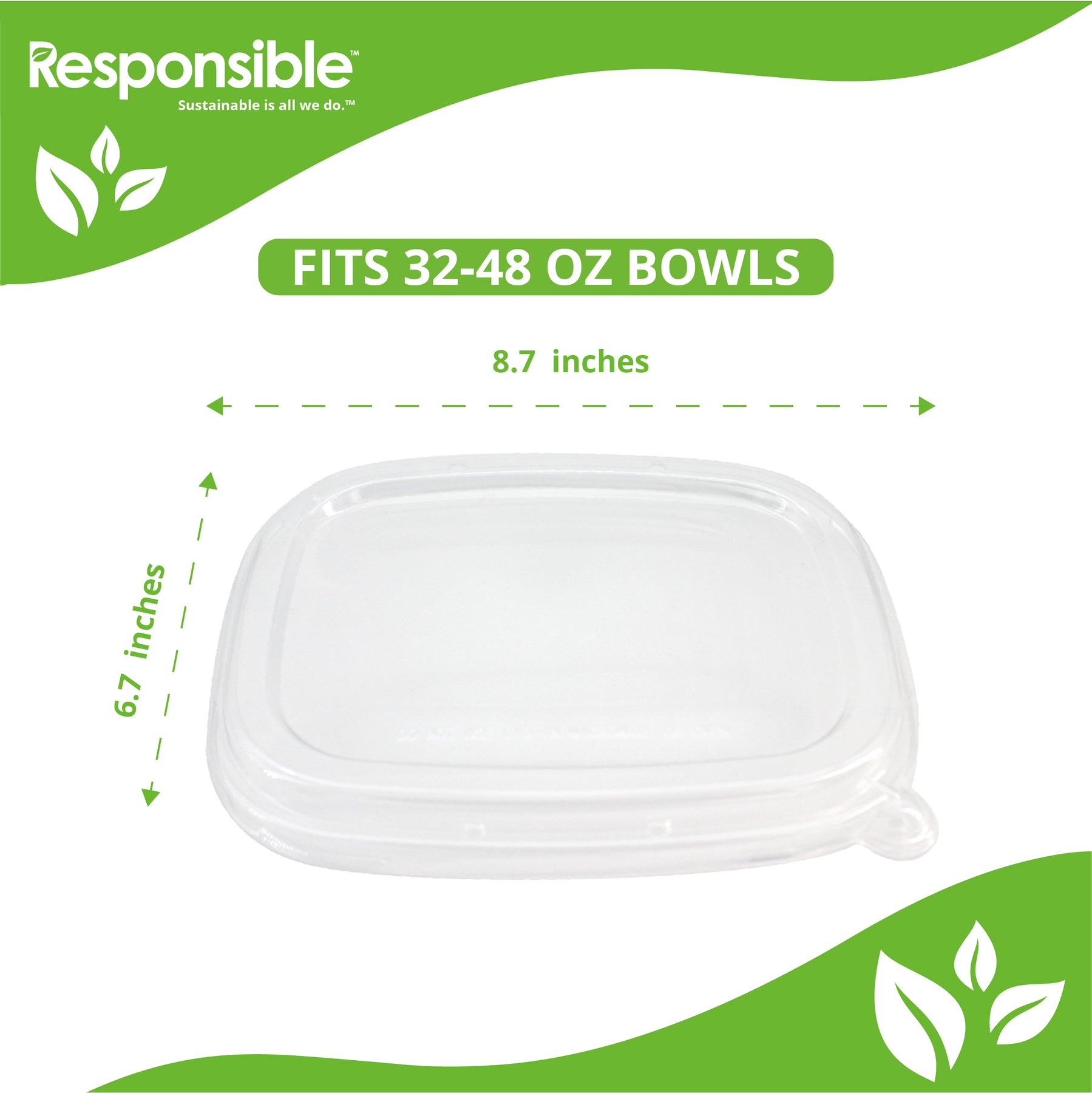 Responsible Products Bowl Lids are eco-friendly, made from recyclable PET. Ideal for hot or cold food, these lids are durable, soak proof, freezer safe, and have no coating. Our compostable bowls and lids combinations are the most sustainable choice for serving breakfast, lunch, or dinner at special events, catered events, takeout restaurants, cafeterias, and cafes.