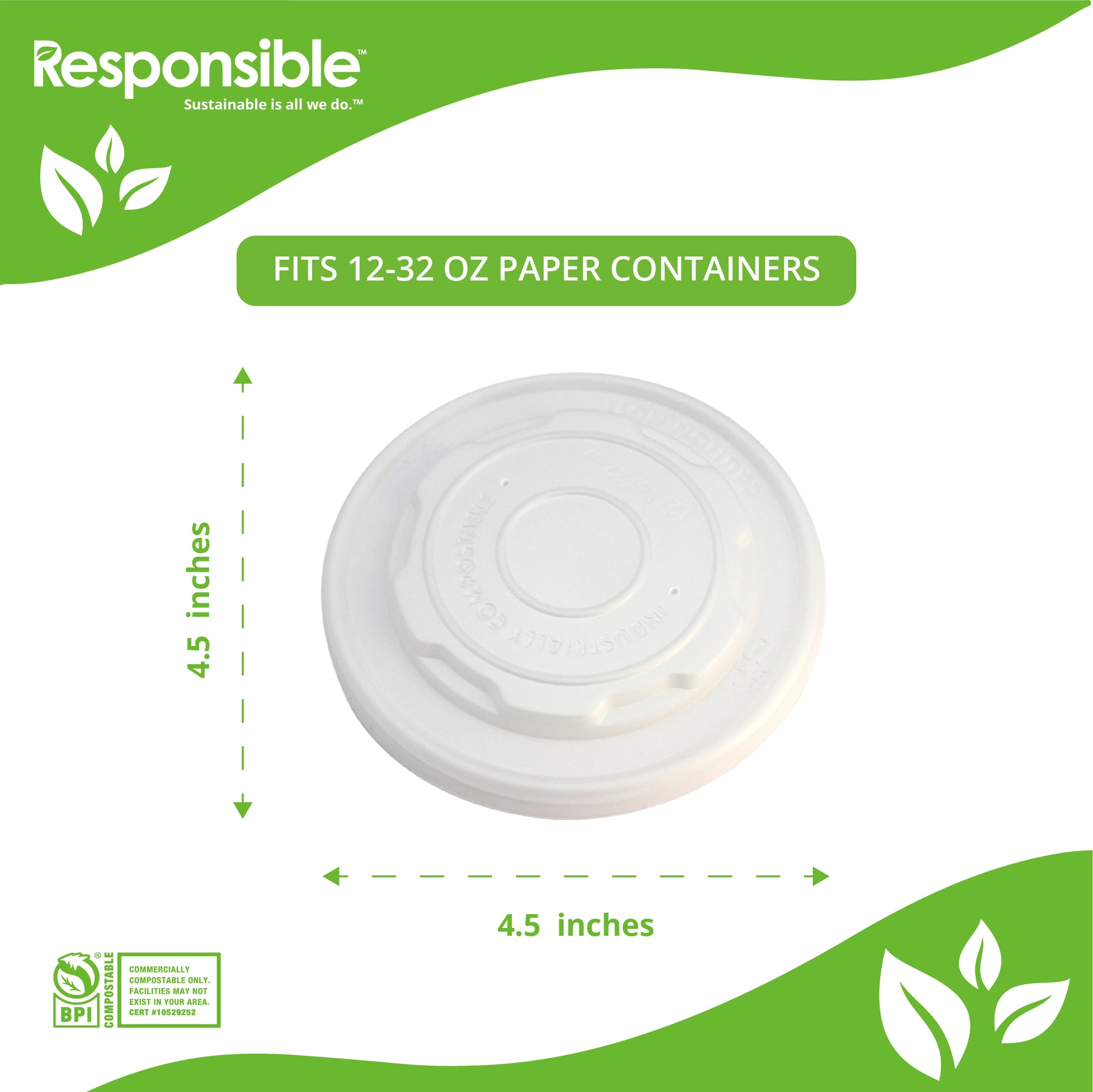 ✅ Biodegradable Products Institute (BPI) Certificate #10529252. Certified commercially compostable only. Facilities may not exist in your area. Check with local officials.